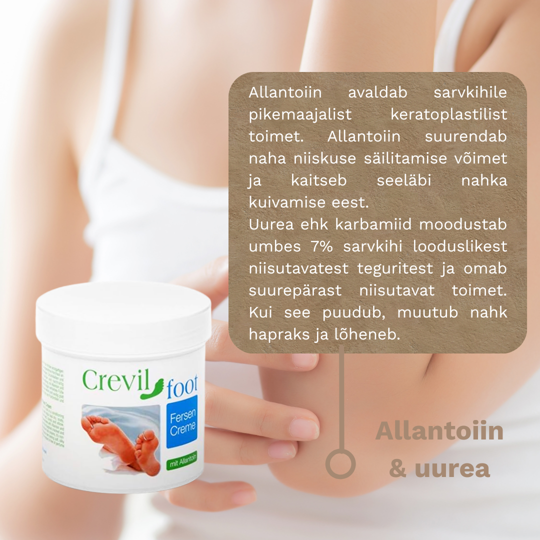 Crevil kanna- ja jalakreem on spetsiaalselt väljatöötatud intensiivne jalakreem väga kuiva ja lõhenenud naha kallusevastaseks hoolduseks.