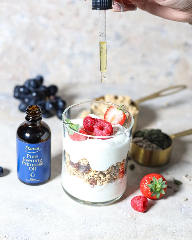 †Efamoli õhtupriimulaõli sisaldab 103 mg GLA-d 1 ml õli kohta. Uuring tavaliste õhtuse priimulaõli kohta, mis on saadaval peatänaval, näitab, et keskmine GLA sisaldus on 92 mg GLA 1 ml õli kohta. Nende kahe arvu erinevus on 11%. Uuring viidi läbi 2024. aasta aprillis.*Uuring viidi läbi ajavahemikul 18. september – 26. november 2020, milles osales 77 naist vanuses 18-65 aastat. Uuringu viis läbi Cue Consumer Research. Uurimisrühm võttis 6 x 500 mg kapslit päevas 12 nädala jooksul.