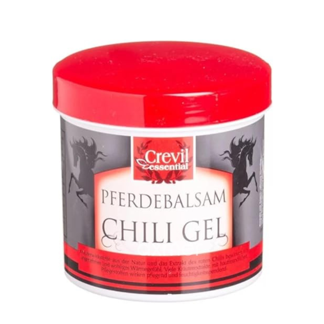 Geel sisaldab rahustavaid ja värskendavaid tugevatoimelisi koostisosi, sealhulgas mentooliõli, kampriõli, eukalüptiõli ja taimeekstraktid. Kapsaitsiinoidid stimuleerivad naha valuretseptoreid ning tekkiv soojus parandab naha vereringet. Crevil Essential hobusepalsami tšilligeel lõdvestab töödeldud piirkonda samaaegse soojendava toimega ja annab meeldiva enesetunde. Tšilli annab imelise sooja tunde ja ülima lõõgastustunde.